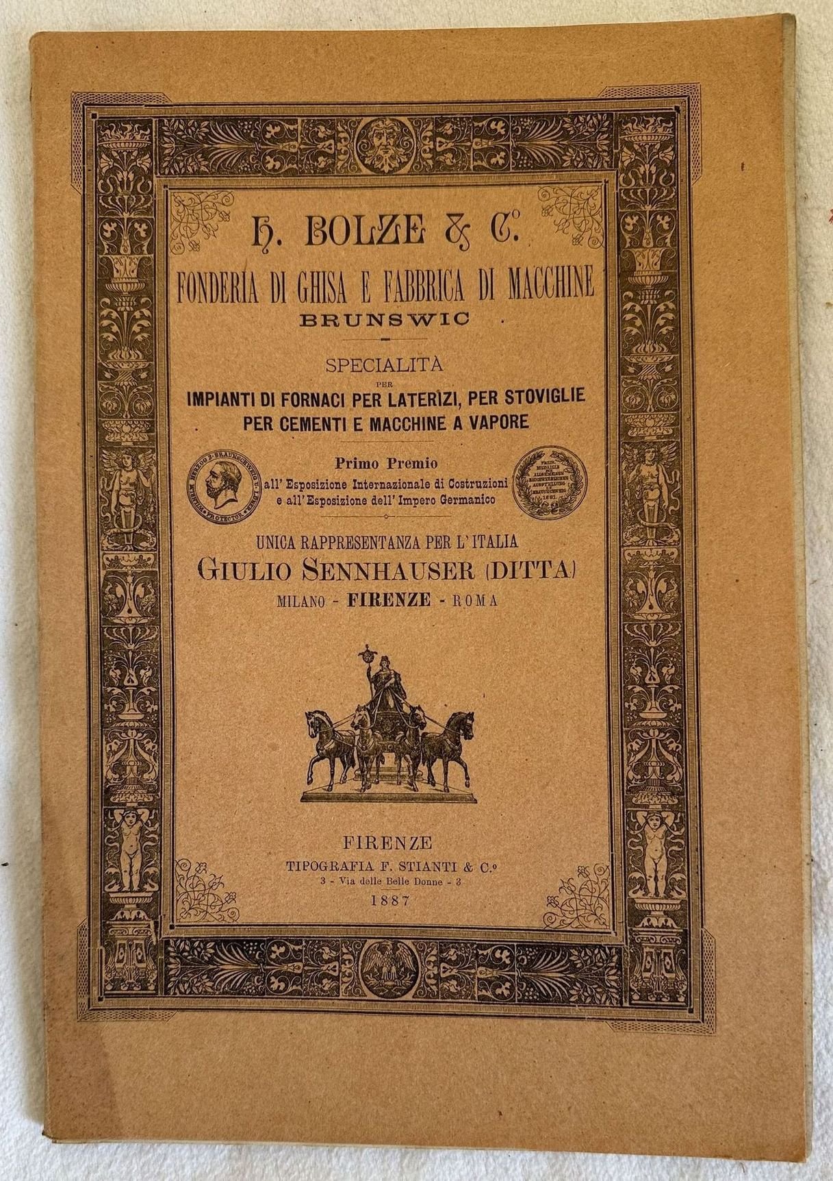 H. BOLZE & C. FONDERIA DI GHISA E FABBRICA DI MACCHINE BRUNSWIC SPECIALITA' PER IMPIANTI DI FORNACI PER LATERIZI, PER STOVIGLIE PER CEMENTI E MACCHINE A VAPORE UNICA RAPPRESENTANZA PER L'ITALIA GIULIO SENNHAUSER (DITTA)