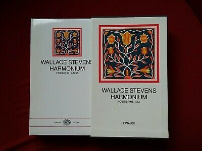 In-8° (22x15 cm) tela rigida con sovracoperta con alette paratestuali e cofanetto editoriale illustrati, taglio superiore marrone. Pp XIII, 699, ritratto fotografico bianco e nero dell'autore all'antiporta, 14 tavole fuori testo in bianco e nero e a colori. Prima edizione nei Millenni. Ottimo esemplare. Non comune edizione italiana (e non solo) di riferimento per cura filologica e apparati della quasi totalità del corpus poetico di Wallace Stevens (1879-1955) raffinato ed enigmatico cantore modernista. Testo originale americano a fronte. Suite iconografica sposantesi perfettamente con lo stile ermetico dell'autore composta di riproduzioni di opere dei Pennsylvania dutch ovvero di quegli immigrati olandesi e tedeschi da cui Stevens discende.