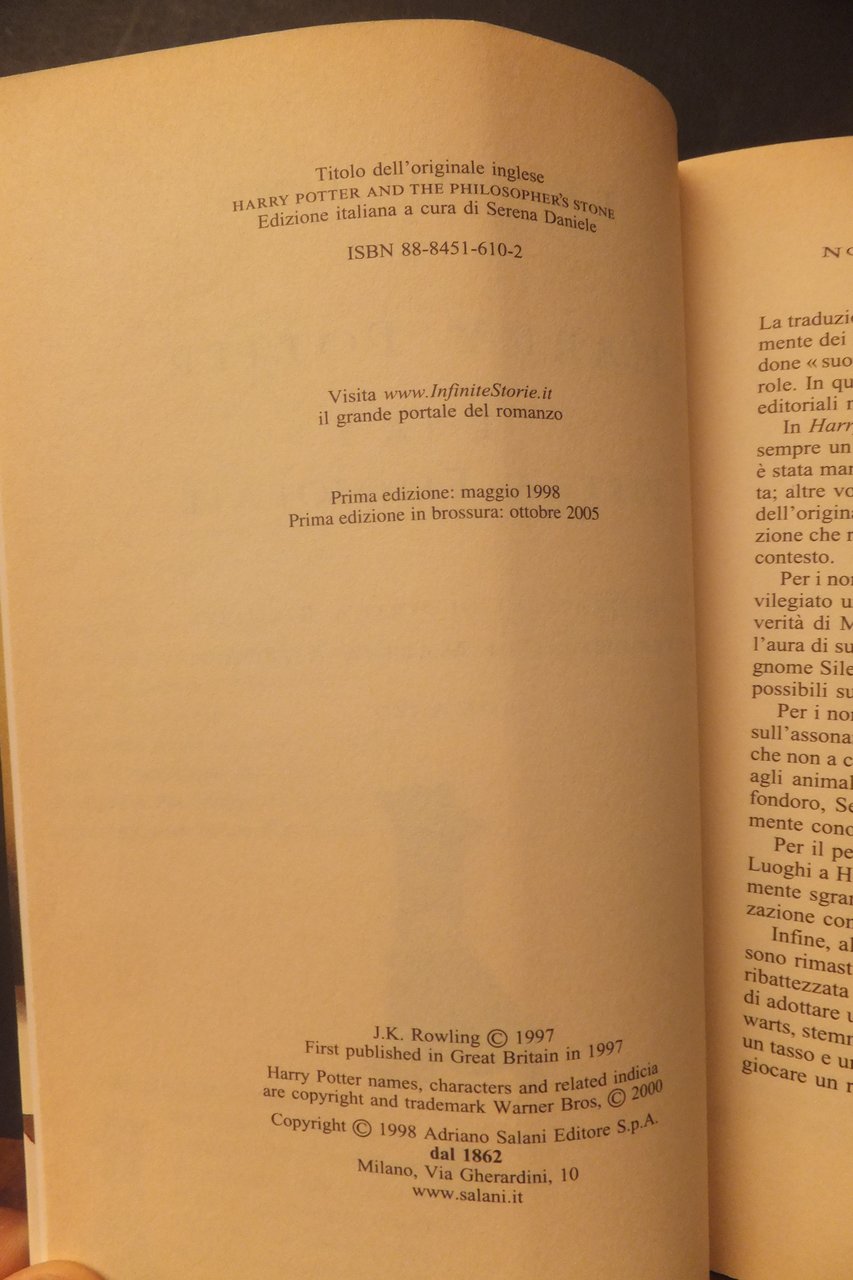 - HARRY POTTER E LA PIETRA FILOSOFALE SALANI PRIMA ED, BROSSURA 2005