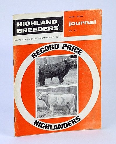 • Highland Breeders' Journal - Official Journal of the Highland, Cattle Society, June 1974, No. 17 K.W. Walker J. Bowser record price highlanders, Coinneach Ruadh of Leys, and Robina Gael of Benmore. Many black and white photos., Features: Leys, Mothering the Exotics, Agriculture Magazine Back Issues