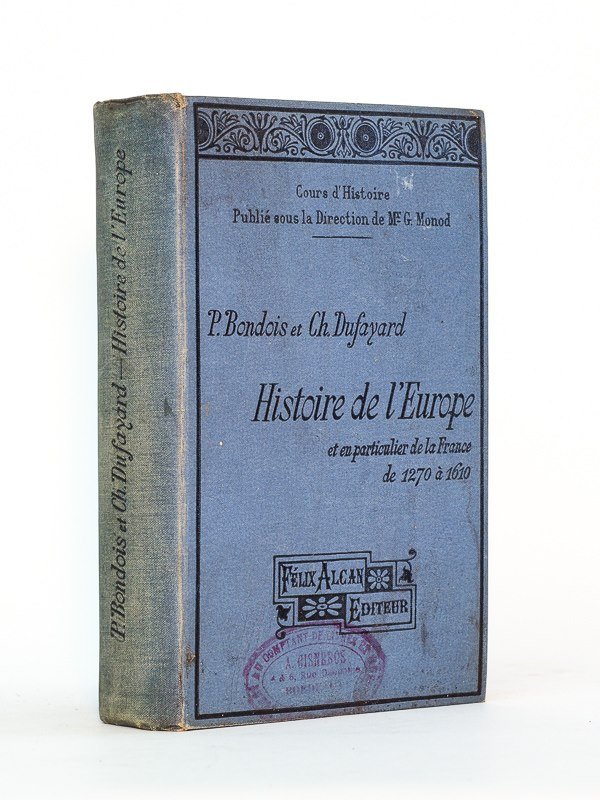 Rédigées conformément aux programmes officiels pour les classes de seconde et de troisième, avec 77 gravures et 6 cartes coloriées hors texte, 1 vol. fort in-12 rel. pleine percaline bleue éditeur, Félix Alcan, Paris, 1897, 708 pp. Etat très satisfaisant, complet des 6 cartes dépliantes en couleurs. Peu courant.