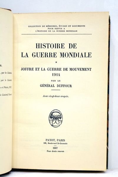 Histoire de la guerre mondiale. Tome I: Joffre et la guerre de mouvement 1914. Avec vingt-deux croquis.