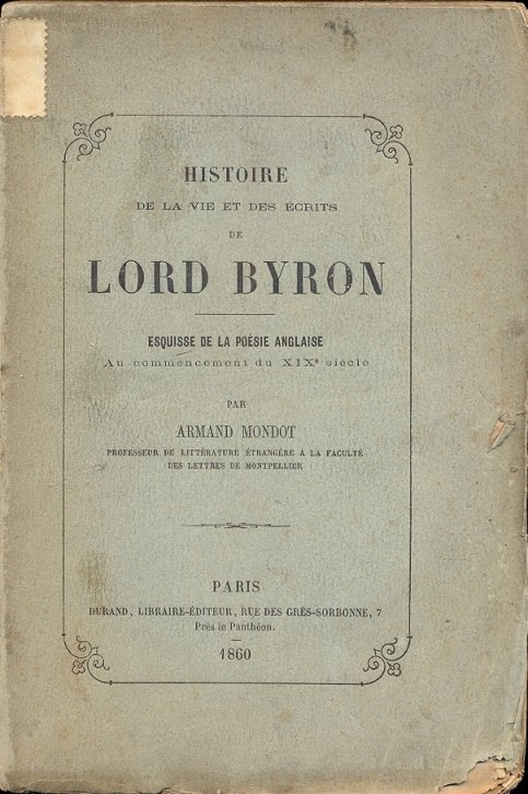 Histoire de la vie et des ecrits de Lord Byron. Esquisse de la poèsie anglaise au commencement du XIX. e Siècle.