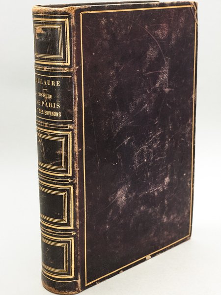 Rappel du titre complet : Histoire de Paris depuis les premiers temps historiques par J.-A. Dulaure, annotée et continuée jusqu'à nos jours par Camille Leynadier [ Avec : ] Histoire physique, civile et morale des Environs de Paris par J.-A. Dulaure Cette version de l'Histoire de Paris de Dulaure, publiée par la "Librairie Centrale des Publications illustrées à 20 centimes" semble très peu commune ainsi complète. Etat très satisfaisant (reliure un peu frottée, des rouss. mais bon état général).