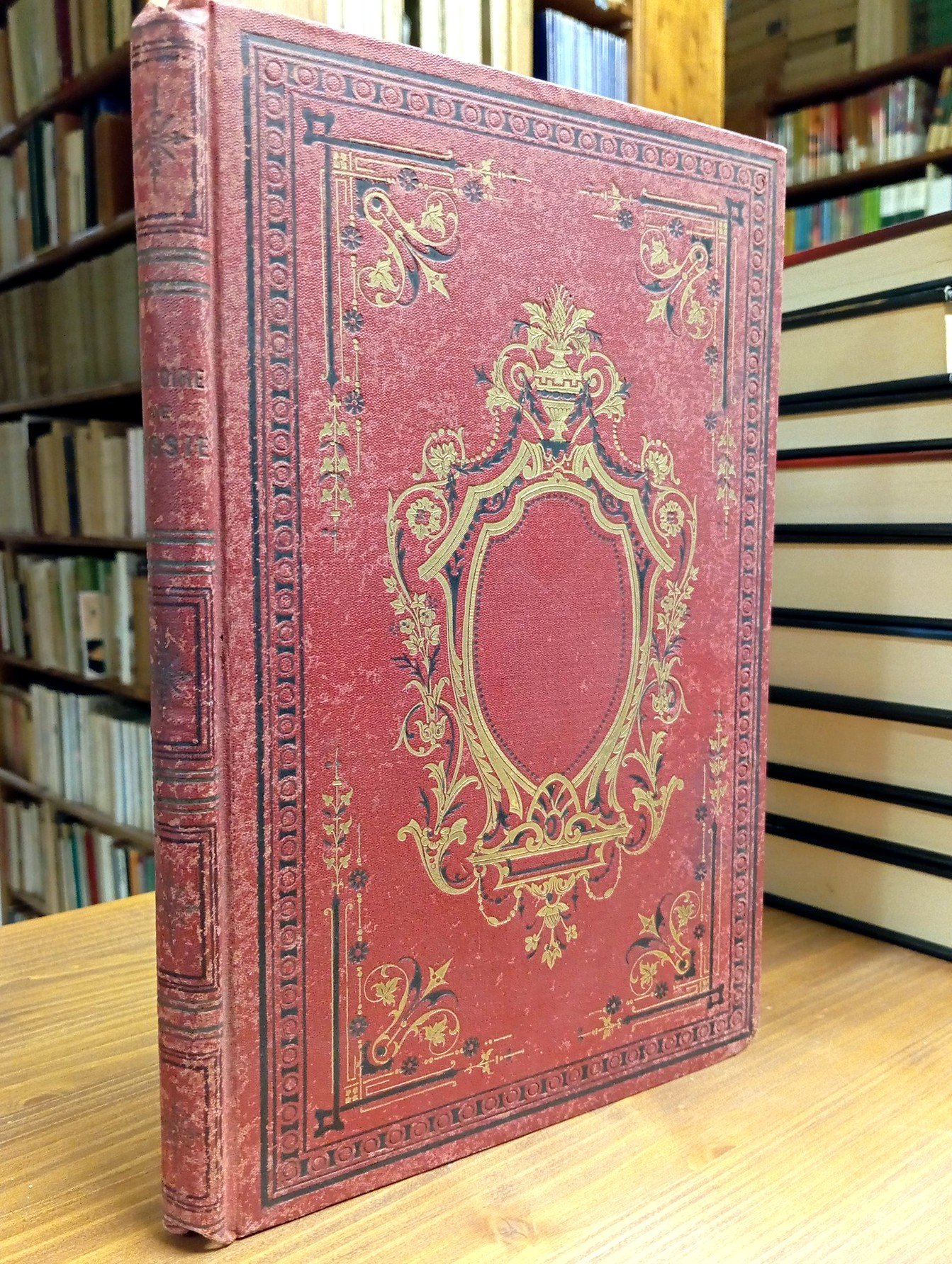 Edizione francese / French edition - Legatura editoriale rigida in tela rossa con numerosi fregi in oro e in nero, XII-192 pagine. Fioriture concentrate perlopiù ai fogli di guardia, peraltro esemplare ben tenuto e pienamente godibile.