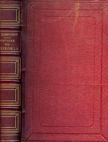 In-8° (240x155mm), pp. VII, 408, legatura editoriale m. pelle rossa con titolo e riquadi di filetti in oro entro scomparti al dorso. Piatti in percallina rossa con filettature plurime a secco. Tagli dorati. Due tavole cromolitografiche f.t., di cui una all'antiporta con la visione di un arcobaleno in una notte tropicale e l'altra tra le pp. 72-73 con le gradazioni cromatiche di diversi spettri luminosi di gas, minerali, composizioni della stratosfera. 90 incisioni silografiche f.t. e intercalate n.t. disegnate e incise da Yan' Dargent. Qualche fioritura. Ottima copia. Prima edizione di questa pregevole opera di divulgazione astronomica composta da un fecondo scrittore scientifico, professore di astronomia e di meteorologia all'Association Polytechnique. Rambosson (Saint-Julien, 1827-Parigi, 1886) fu altresì redattore de 'La Science pour tous' e presidente della Classe di Scienze della Société des Arts, Sciences et Belles Lettres di Parigi. 'Vous avez fait un beau et bon livre, qui sera utile non seulement aux gens du monde, mais même aux savants. Personne plus que moi.n'est heureux de voir la place honorable qui vous avez su vous créer dans la science en dehors de tout coterie', scrive nella lettera introduttiva il Babinet. L'opera, introdotta da un'elogiativa lettera di Babinet dell'Institut de France, tratta del rapporto fra viaggi ed osservazioni scientifiche, dei principali agenti naturali (luce, calore, elettricità, magnetismo), della composizione atmosferica, dei venti, delle formazioni acquose, dei mari e delle maree (anche dei mari artici), dei tornadi, degli uragani e delle trombe d'aria, del fenomeno dell'arcobaleno, dei miraggi, dei cerchi luminosi attorno al Sole e alla Luna, dei fulmini e dei parafulmini, del Fuoco di Sant'Elmo o di San Nicola, delle aurore boreali, dei terremoti, dei vulcani, del grisù e delle sue esplosioni, dei fuochi fatui, dei bolidi, delle meteore, dei meteoriti e dei corpi celesti ed aeroliti in generale.