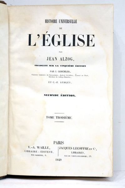 Histoire universelle de l'Eglise. Traduite sur la cinquième édition, par J. Goschler et C.-F. Audley. Seconde édition. Tome troisième.