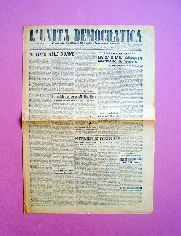 Hitler è morto Ultime ore di Berlino in prima L'Unità Democratica 2 maggio 1945