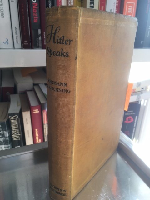 8vo, original yellow cloth, 287pp.*Foreword / Part I - 1932: Contemporary events - I. The next war - II. A morning and evening on the Obersalzberg - III. Eastern policy and the new German autocracy / Part II - 1933: Contemporary events - IV. Antichrist - V. At the dinner table - VI. ªYes! We are barbarians´ - VII. Coffee and cakes - VIII. Enrich yourselves - IX. After leaving the legaue of nations / Part III - 1934: Contemporary events - X. Hitler's foreign policy - XI. Hitler's foreign policy, continued - XII. A dangerous game - XIII. Past the civil war - XIV. A new social order, a new exonomy - XV. Is Hitler a dictator? - XVI. Magic, black and white - XVII. 'The human solstice - XVIII. Hitler himself - XIX. The eagle's eyrie. - Hermann [Adolf Reinhold] Rauschning (1887-1982), German Conservative Revolutionary, who briefly joined the Nazis before breaking with them. In 1934 he renounced Nazi party membership and in 1936 emigrated from Germany (eventually settling in United States) and began openly denouncing Nazism. Rauschning is chiefly known for his book ªGespr‰che mit Hitler´ (1940) (ªConversations with Hitler´) US title ªVoice of Destruction´ (1940), UK title ªHitler Speaks´ (1940) , in which he claimed to have many meetings and conversations with Hitler.