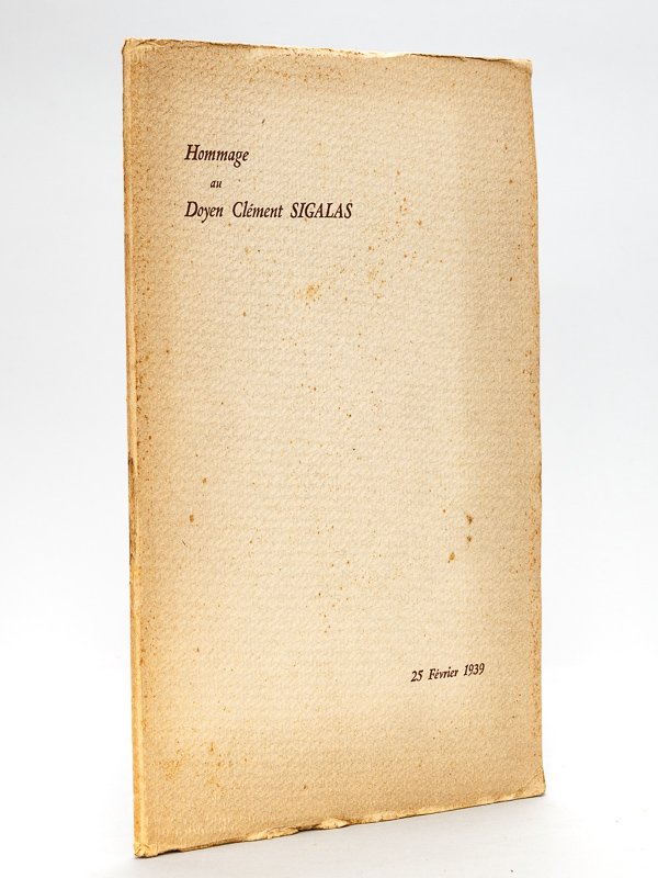 Hommage au Doyen Clément Sigalas. 25 février 1939