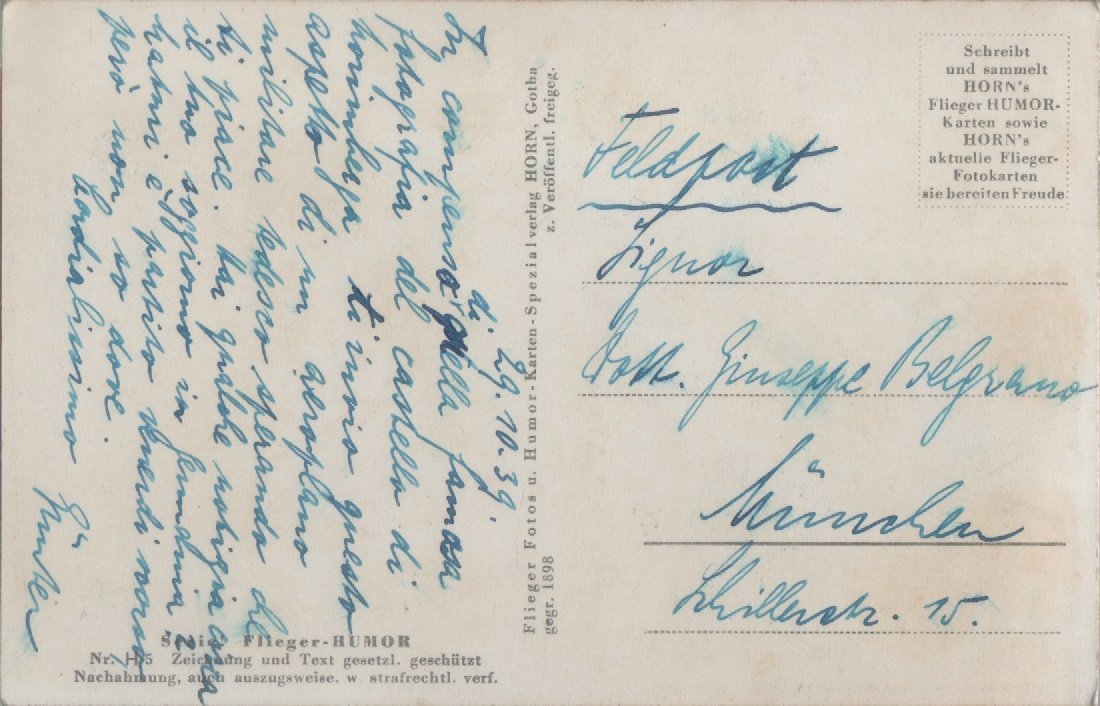 Horns Flieger -Cartolina umoristica. Viaggiata 1939