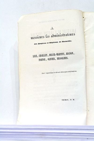 50 pages, 2 pages blanches (13,5x21cm). Broché. Légères salissures sur la page de titre. Petites traces de plis. Bon état. J.F.R. Thomas, docteur en Médecine, Chirurgien-chef-Interne de l'Hôtel-Dieu de cette ville. "Sangsues". Marseille.