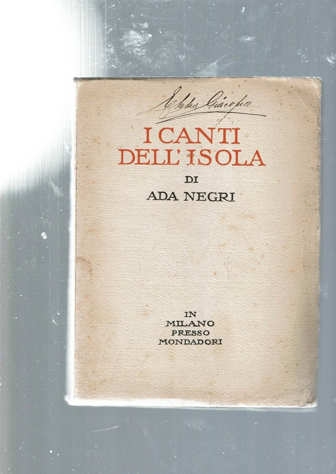 I CANTI DELL'ISOLA DI ADA NEGRI -** MONDADORI 1924 ** PP. 145. CM 20.5 X 15.5. IN BROSSURA EDITORIALE. FIRMA AL PIATTO ANTERIORE ** PRIMA PP. CON SCRITTE. PERFETTE CONDIZIONI IL RESTO