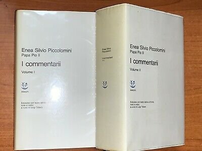 2 voll. in cofanetto, rilegatura tela, sovracoperta, pp. XXVII-2725, cm 15x24. (Classici). Un'autobiografia in cui tutto il mondo politico e religioso del Quattrocento e tutta la vita dell'epoca risorgono e si trasformano con l'evolversi di vicende intricate, attraversate da un testimone-attore che compone la sua vita come un'opera d'arte e al tempo stesso come un disegno della Provvidenza. Fu uomo curioso di ogni aspetto della vita, pronto a coglierne i tratti essenziali per proseguire sulla lunga via che lo condusse a un glorioso e drammatico pontificato. Intrighi di Corte, di Curia e di Concilio, guerre, personaggi illustri o ignoti, vizi e perfidie dei potenti: tutto viene registrato con lo stesso acume. Una delle manifestazioni pi˘ piene del Rinascimento italiano proposta nella versione integrale basata sul codice dell'ultima stesura.