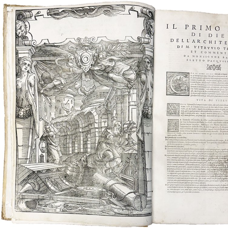 I dieci libri dell'architettura di M. Vitruvio tradutti et commentati da monsignor Barbaro eletto Patriarca d'Aquileggia. Con due tavole, l'una di tutto quello si contiene per i capi dell'opera, l'altra per dechiaratione di tutte le cose d'importanza.