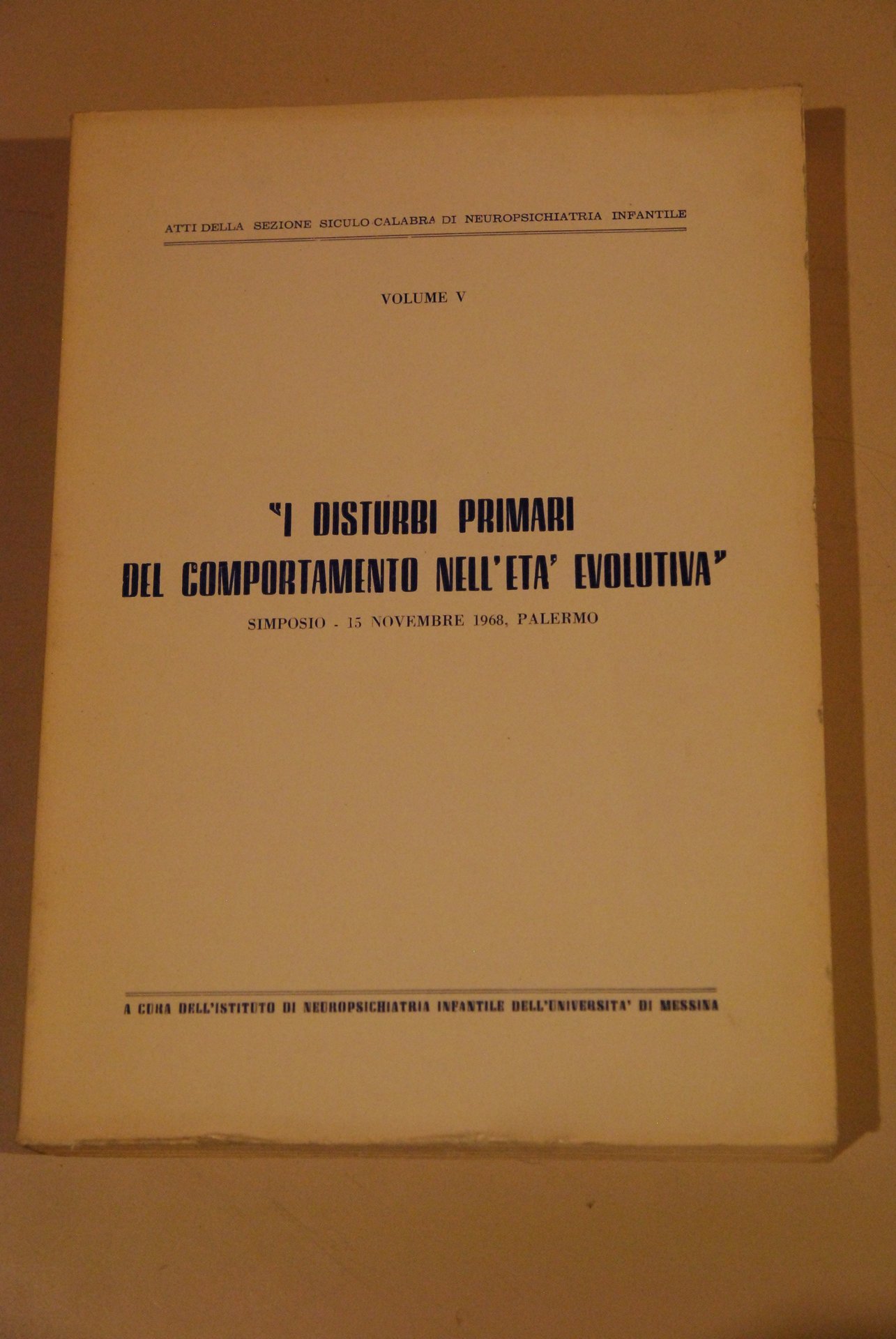 simposio novembre 1968 i disturbi primari del comportamento nell'età evolutiva. palermo .