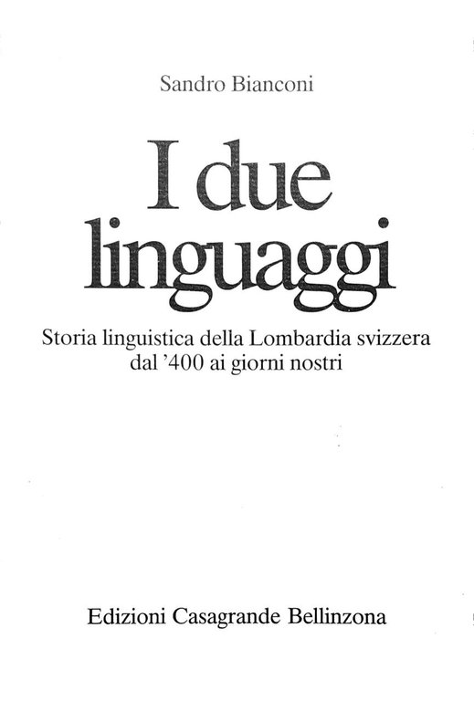 I DUE LINGUAGGI : STORIA LINGUISTICA DELLA LOMBARDIA SVIZZERA DAL ‘400 AI NOSTRI GIORNI.