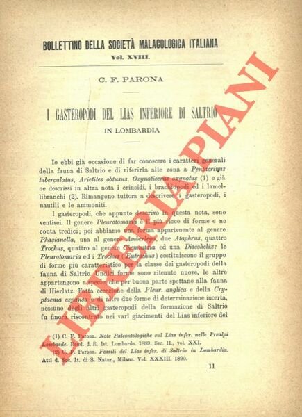 I Gasteropodi del Lias inferiore di Saltrio in Lombardia.