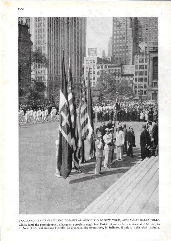 I Goliardi Italiani sfilano dinanzi al Municipio di New York. Stampa 1934