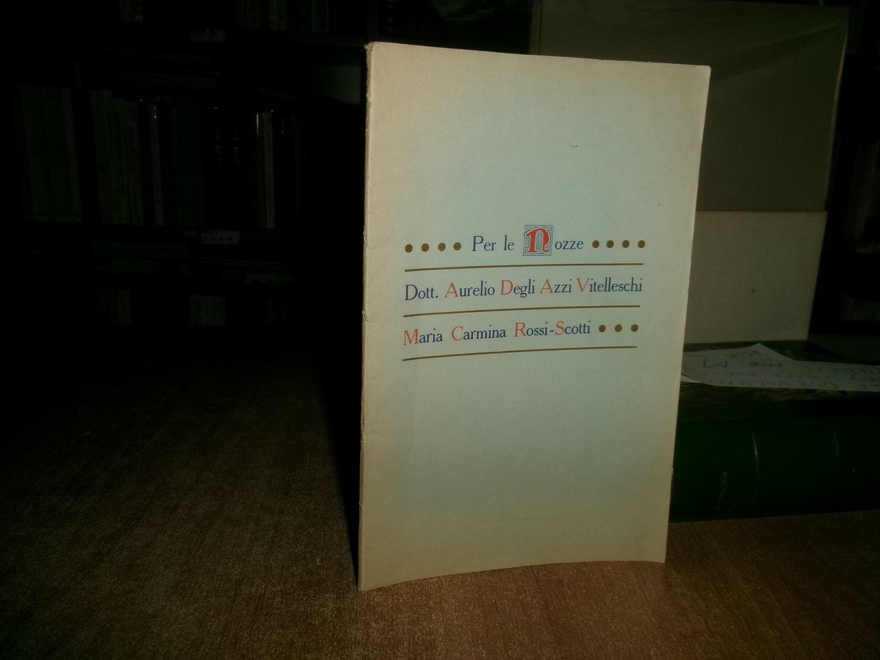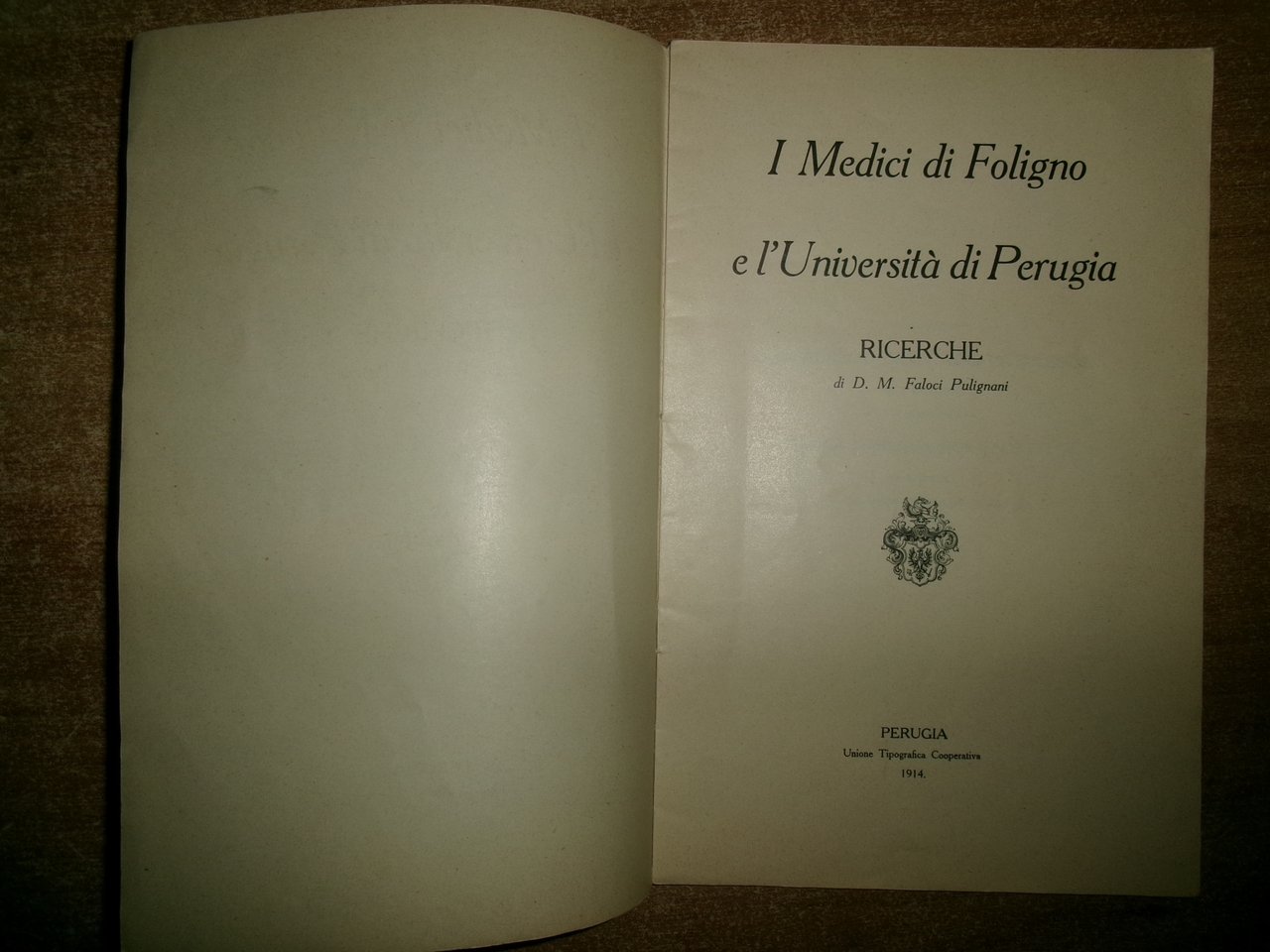 Per le Nozze Dott. Aurelio Degli Azzi Vitelleschi Maria Carmina Rossi-Scotti. I Medici di Foligno e l' Università di Perugia ricerche di D. M FALOCI PULIGNANI. Perugia, Unione Tipografica Cooperativa, 1914. In-8°, br. orig. 41 pp. con alcune illustrazioni n.t. In buono stato di conservazione. Neg. mob. rosso entro busta trasp.