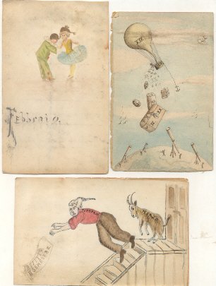 7 cartoncini acquarellati, raffiguranti alcuni mesi, di cm. 9 x 15 ca. Disponiamo da gennaio a luglio.