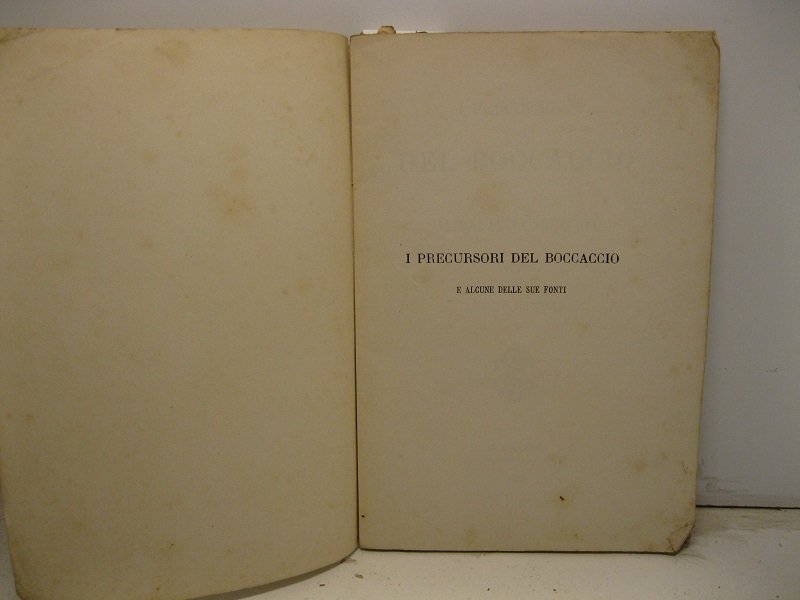 In 16, pp. 86 + (2b). P. ant. rifatto con carta d'epoca. P. post. orig. Lievi strappetti al marg. sup. di p. 1. Intonso. Noto saggio del Bartoli sulle fonti di Boccaccio. Traversari, p. 42.