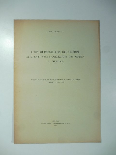 I tipi di imenotteri del Guerin esistenti nelle collezioni del Museo di Genova