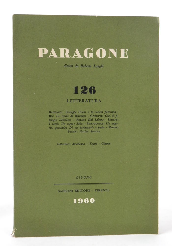 LIBROEdizione pre-originale.Piccola sbucciatura al piede del dorso, per il resto un ottimo esemplare.Le poesie pubblicate per la prima volta sul numero di 'Paragone' entreranno poi a far parte della silloge «Gli strumenti umani» del 1965. Altri testi in questo numero di «Paragone» di Luigi Baldacci, Carlo Bo, Sergio Solmi, Attilio Bertolucci e Mario Rigoni Stern.