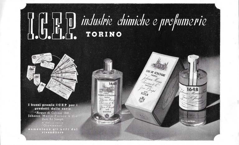 ICEP Industrie Chimiche e Profumerie. Torino. Advertising 1939