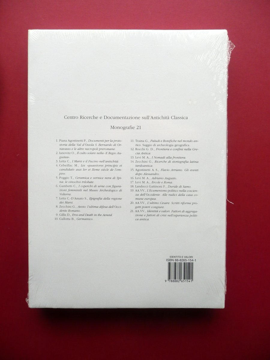 AA. VV., Identità e valori Fattori di aggregazione e fattori di crisi nell'esperienza politica antica L'Erma di Bretschneider, Roma 2001; cm 24x17; pp. 306; brossura ed. ill. a colori. Condizioni di conservazione Esemplare allo stato di nuovo, ancora sigillato. Allo stato di nuovo, ancora sigillato. SETT163.L15629 N