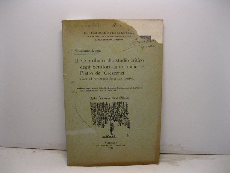 II contributo allo studio critico degli Scrittori agrari italici. - Pietro dei Crescenzi (Nel VI Centenario della sua maorte). Estratto dahli Annali della R. Stazione Sperimentale di Agrumicoltura e frutticoltura Vol. V, 1919 - 1921