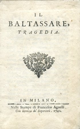 In-8° antico (188x118mm), pp. 102 + (2). Cartonatura rustica coeva. Fregio inciso al titolo. Dorso restaurato. Aloni e fioriture interne. Discreto esemplare. Prima edizione. Il Gorini Corio, nato da famiglia luganese a Selbiate, presso Como, nel 1685, morto nel 1761, fu poeta drammatico, imitatore e introduttore in Italia dei grandi tragici e commediografi francesi, da Corneille a Racine a Molière, autore di numerose e fortunate opere teatrali. Frequentatore dei Verri e di Beccaria, oltr alle sue opere teatrali compose anche 'L'uomo: trattato fisico e morale', volume che fu posto all'Indice. Cfr. Natali, 'Il Settecento', I, p. 237 e II, pp. 194-95 e 280.