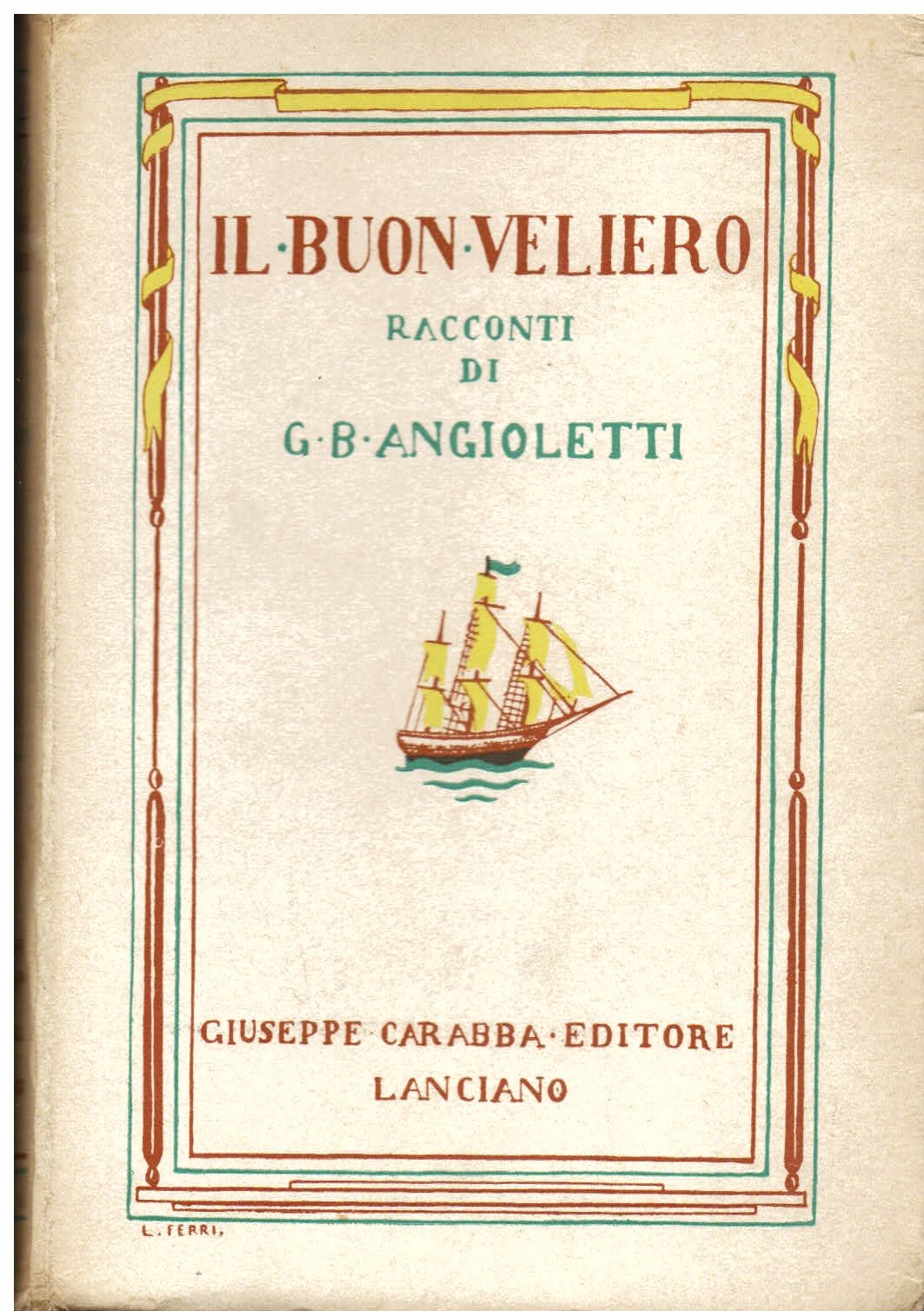 In-8°, pp. (6), 216, (6), brossura editoriale con titolo a più colori e vignetta con un veliero entro cornice policroma, il tutto disegnato da L. Ferri. Perfetto esemplare entro velina. Prima edizione. Spaducci, p. 17.
