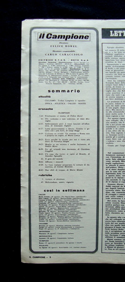 Il Campione Anno VI Numero 34 22 Agosto 1960 Speciale Olimpiadi Roma