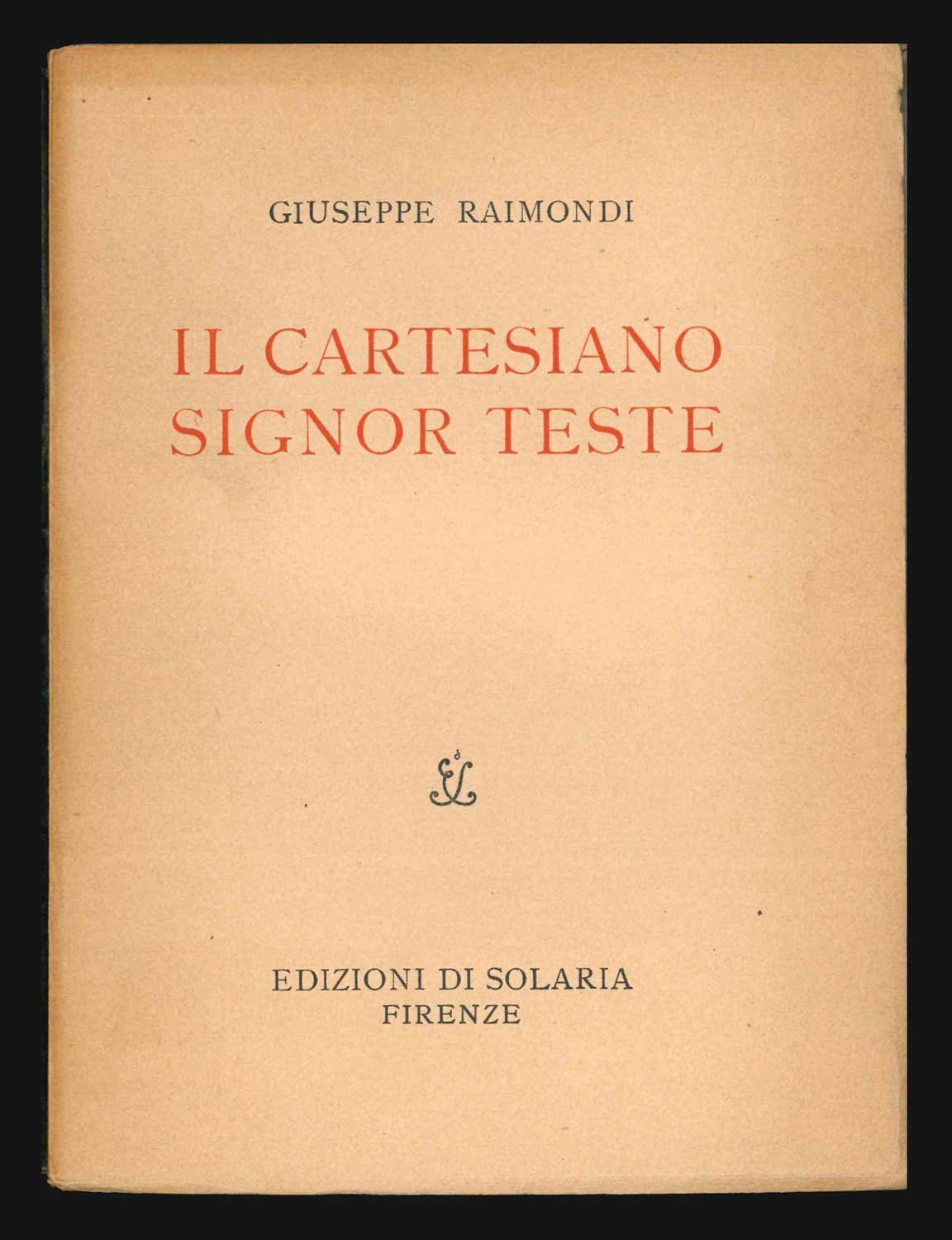 LIBROEdizione originale.Esemplare numero 137 (di 420), con la copertina variante nella classica grafica di «Solaria»; in ottime condizioni, a fogli ancora chiusi; pecetta dei «Fratelli Parenti Editori – Firenze» ad aggiornare il prezzo in quarta di copertina, dalle originali «L. 7» a «L. 14».Brillante operetta a metà tra il saggio e l’esercizio letterario, dedicata al Valéry di «La soirée avec monsieur Teste». Inusualmente per le edizioni di «Solaria», la copertina presenta un design a due colori impreziosito da una piccola illustrazione, non firmata ma di Bruno Bramanti, che parve non gradita all’autore — da cui l’esistenza di copie con la classica grafica di copertina «Solaria». Fu Raimondi, naturalmente, a volere il disegno di Leo Longanesi stampato in antiporta e raffigurante il «Colloquio notturno del Signor Edmondo Teste e di Renato Cartesio».
