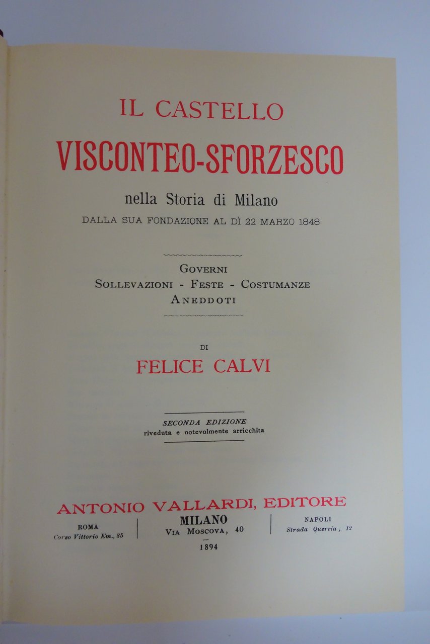 IL CASTELLO VISCONTEO SFORZESCO CALVI VALLARDI 1894 ED. ANASTATICA MILANO SFORZA