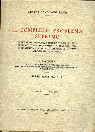 Il completo problema supremo. Concezione energetica dell'universo nel suo 'insieme' e nel suo 'vario' a traverso una concatenata e continua ascensione di fatti appoggiati dalla fisica. Relazione dedicata alla Società Filosofica Italiana.