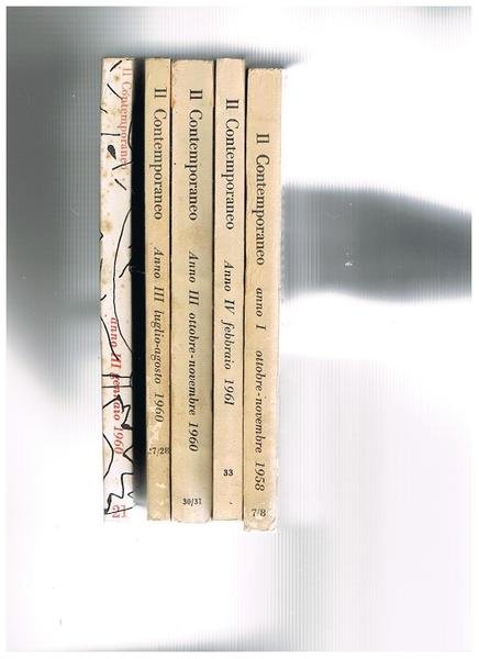 Il Contemporaneo periodico settimanale iniziato nel 1954 diventuto mensile dal 1958. Disponiamo dei n° 3,4,5-6,7-8,9, 11,12,14-15,18-18, del 1958; 21,22,23,24,25-26,27-28,30-31,32,33,34,35-36,37,40,41,42 del 1960; 33 e 43 del 1961.