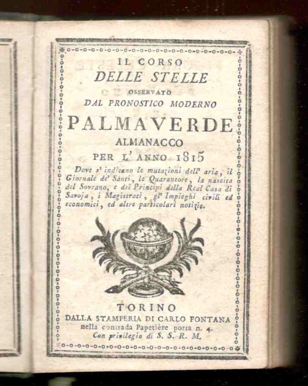 Il corso delle stelle osservato dal pronostico moderno Palmaverde almanacco piemontese per l'anno 1815