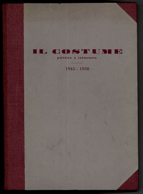 PERIODICOEdizione originale.Collezione completa (21 fascicoli), in ottimo stato di conservazione.Uscito per la prima volta il 21 giugno 1945 e attivo fino al numero 21 del 4 maggio 1950, «Il costume politico e letterario» si presentò come un bimestrale – in verità con periodicità irregolare – d’ispirazione sostanzialmente marxista, partecipando anche alla polemica tra Togliatti e Vittorini – a favore del primo – che avrebbe condotto alla chiusura del «Politecnico». Diretta dallo scrittore napoletano Velso Mucci – tornato a Roma al termine della guerra dopo un lungo periodo trascorso a Parigi, iscritto al Partito Comunista Italiano dal 1947 – la rivista contò fin da subito e per tutta la sua durata su collaborazioni importanti e fedeli. Oltre a Ungaretti, Saba, Cardarelli, Tobino, Bassani, Comisso e altri, i più vicini a Mucci furono Sinisgalli, Maccari, Ciarletta e Ferrara.