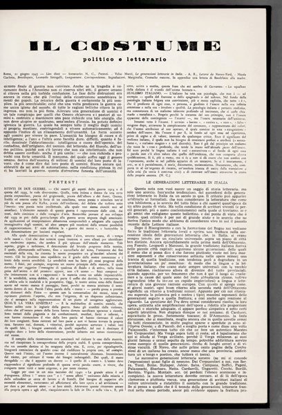Il Costume politico e letterario. Direttore responsabile Velso Mucci
