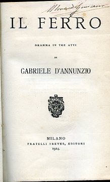 In-16°, pp. (8), 200 + 8 di catalogo edit. Leg. t. tela rossa. Una dedica e una firma a penna del tempo. Edizione originale, senza indicazione di migliaio, dedicata 'alla memoria di Gigliola De Sangro'. Rispetto ad altre edizioni dannunziane, questa ha veste tipografica talmente modesta che il poeta stesso la definì 'orrenda'. Il dramma fu rappresentato con successo per la prima volta a Parigi il 14 dicembre 1913, in francese e in forma diversa, con il titolo 'Le Chèvrefeuille'; sulle scene italiane apparve la sera del 27 gennaio 1914, contemporaneamente al Carignano di Torino, al Manzoni di Milano ed al Valle di Roma. Il testo originale francese fu pubblicato solo nel 1935 nel vol. XLVI dell'Edizione Nazionale. De Medici, 82. Guabello, 236. Vecchioni, 48. Falqui, p. 34.