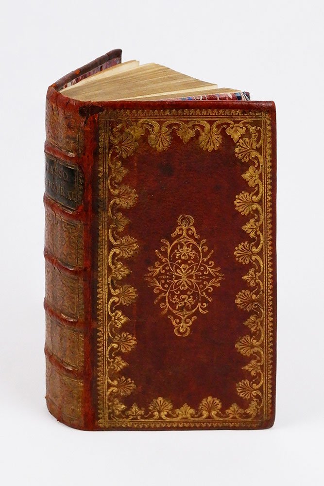 - legatura in pieno marocchino, piatti e dorso elegantemente decorati in oro con motivi floreali, nervi e tassello con titolo al dorso,