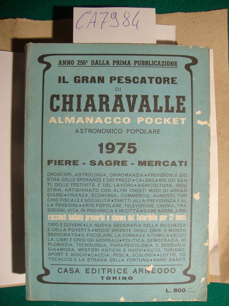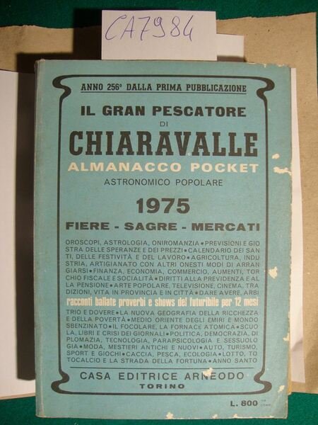 Almanacco del 1975 riccamente ill. in b.n. n.t. e f.t. (anno 256° dalla prima pubblicazione). Si tratta di una annata dei più noti ed antichi almanacchi stampati sul territorio italiano - DETTAGLIO DELLE CONDIZIONI : Segni d'invecchiamento alla coperta con abrasioni al piatto anteriore - .