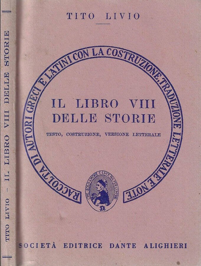 Libro VIII delle storie di Tito Livio; parti del testo il latino. Brossura flessibile, illustrata ed ingiallita dal tempo presentante lievi segni di usura da scaffale ai margini e tracce di usura da sfregamento ai piatti ove presenti sporadiche macchioline. Pagine godibili anche se leggermente ingiallite dal tempo. Numero pagine 183.