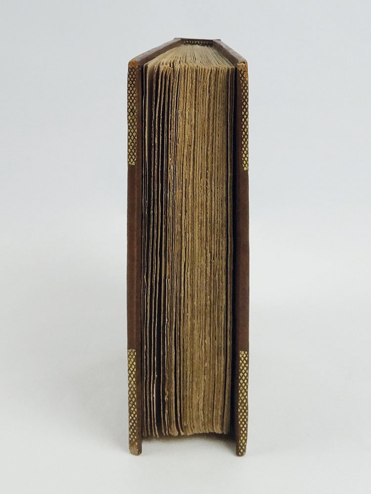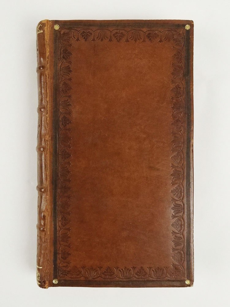 - graziosa legatura in piena pelle, al dorso nervi, fregi e titoli oro, piatti impressi a secco a motivi floreali,