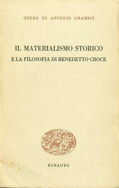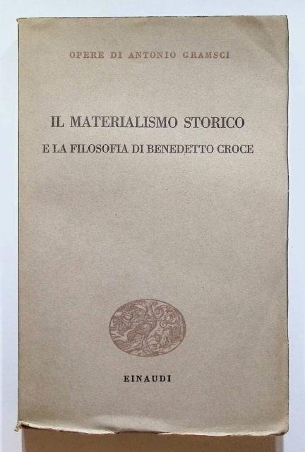 XXII, 299 p. ; 22 x 15 cm. Opere di Antonio Gramsci. Per Gramsci, Benedetto Croce dà alla borghesia italiana gli strumenti culturali più raffinati per delimitare i confini fra gli intellettuali e la cultura italiana, da una parte, e il movimento operaio e socialista dall'altra. Negli scritti dei "Quaderni del carcere", poi raccolti sotto il titolo Il materialismo storico e la filosofia di Bendetto Croce, Gramsci si propone di combattere la sua funzione di maggior rappresentante dell'egemonia culturale che il blocco sociale dominante esercita nei confronti della classe lavoratrice italiana. Brossura editoriale, coperta in cartoncino flessibile di colore grigio chiaro, titolo impreso al piatto e al dorso. Segni del tempo alla brossura in particolare ai profili e alle pagine interne che si presentano imbrunite e ben salde alla cerniera. Libro in buona parte intonso. Edizione numerata di mille esemplari riservata ai partecipanti al VI Congresso nazionale del Partito Comunista Italiano (Milano, 4-10 gennaio 1948): esemplare n. 428. Codice libreria 6559.
