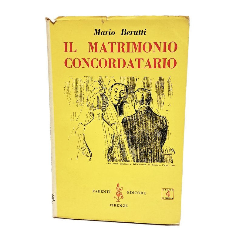 PRIMA EDIZIONE, collana Stato e Chiesa numero 4 Contributo alla documentazione obiettiva della storia dell'allora recente processo di involuzione del diritto matrimoniale. Infatti, la storia del diritto matrimoniale italiano negli ultimi cento anni è strettamente legata alla storia politica dei rapporti tra Stato e chiesa cattolica e l'avvento del fascismo, lo Statuto Albertino e il Concordato hanno segnato una continua regressione nel diritto matrimoniale. In brossura con sovraccoperta illustrata. Pp. 183. Ottime condizioni intonso.
