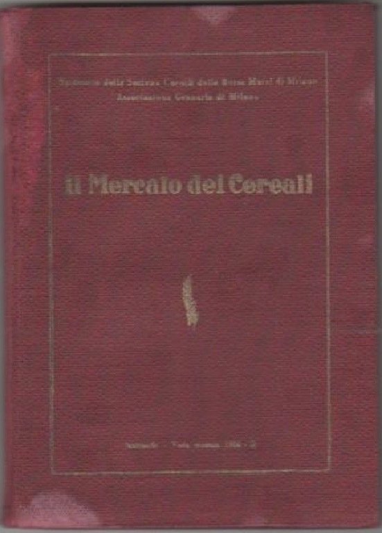 Il mercato dei cereali. Annuario vademecum 1932Sindacato della Sezione Cereali della Borsa merci di Milano Associazione Granaria di Milano.Cartonato morbido - 11.5x16.5cm 195ppTela editoriale con titoli in oro al piatto e al dorso; fioriture alla copertina; timbri coevi alle bianche, buono stato.