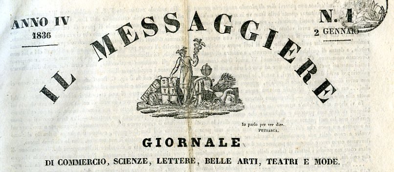 Il Messaggiere. Giornale di Commercio, Scienze, Lettere, Belle Arti, Teatri e Mode. Anno IV
